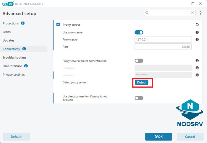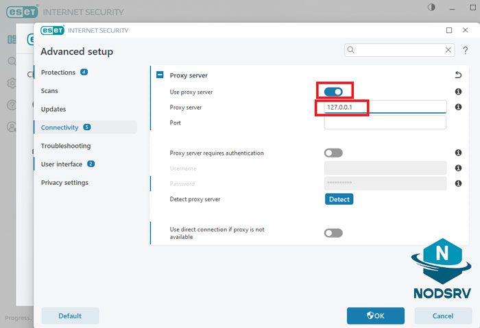 - دکمه F5 کیبورد را بفشارید از مسیر Advanced Setup → Connectivity گزینه Use proxy server را روشن کنید