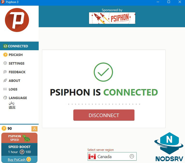 - سایفون را روشن و کشور را روی Canada یا USA (کشور مورد نیاز با توجه به لایسنس خود) قرار دهید