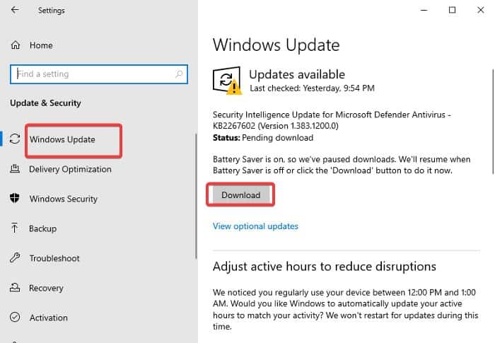 Windows + Iرا فشار دهید —> وارد بخش Update & Security شوید. —> روی Windows Update کلیک کنید.